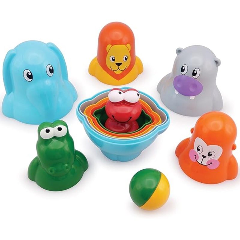 بولینگ حیوانات تولو Tolo تشکیل شده از 6 حیوان بامزه است که می تواند درون یکدیگر قرار بگیرند و تبدیل به یک اسباب بازی کوچک شوند تا شما به راحتی آن ها را حمل و نقل کنید. 5 حیوان را کنار هم قرار دهید و با قورباغه به توپ ضربه بزنید تا حیوان ها بیفتند و امتیار بگیرید. همچنین در کنار بازی کودک می توانید صدا و قیافه حیوانات را با کودک خود آشنا کنید و آموزش دهید.