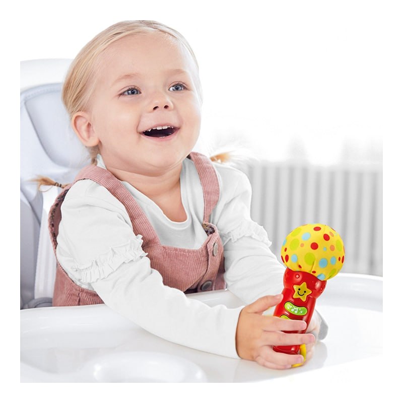 ویژگی‌های اصلی و مزایا: جغجغه میکروفون، با ترکیبی از رنگ‌های شاد و ویژگی‌های چندگانه، به طور همزمان چندین حس کودک را تحریک می‌کند: