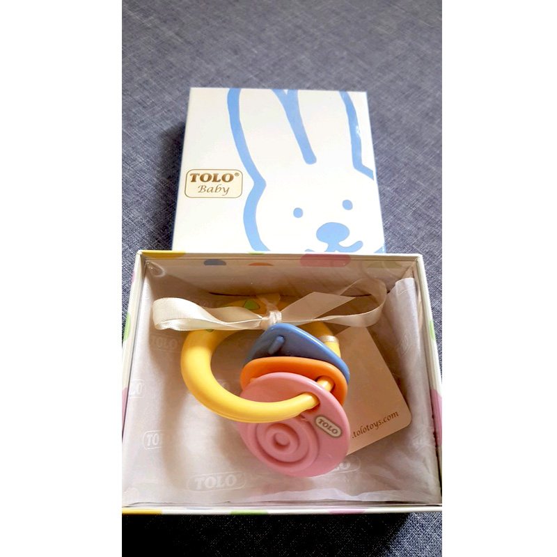 Tolo 80039 Thee Thing Shapes Baby Rattle _دندانگیر کادویی تولو با طراحی خاص خود هم به عنوان دندانگیر و هم به عنوان جغجغه قابل استفاده است، کودک شما با گرفتن آن در دست هایش ضمن تقویت عضلات دست مهارتهای تشخیص، تمایز رنگها و.. را می آموزد.