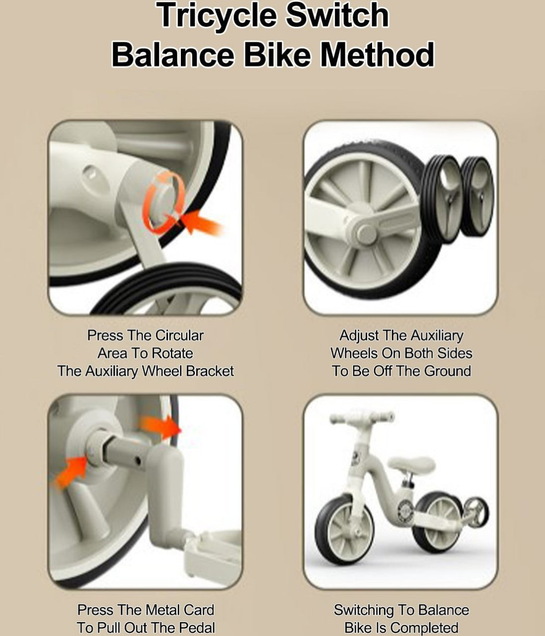 قابل استفاده به صورت سه چرخه با پدال و بدون پدال