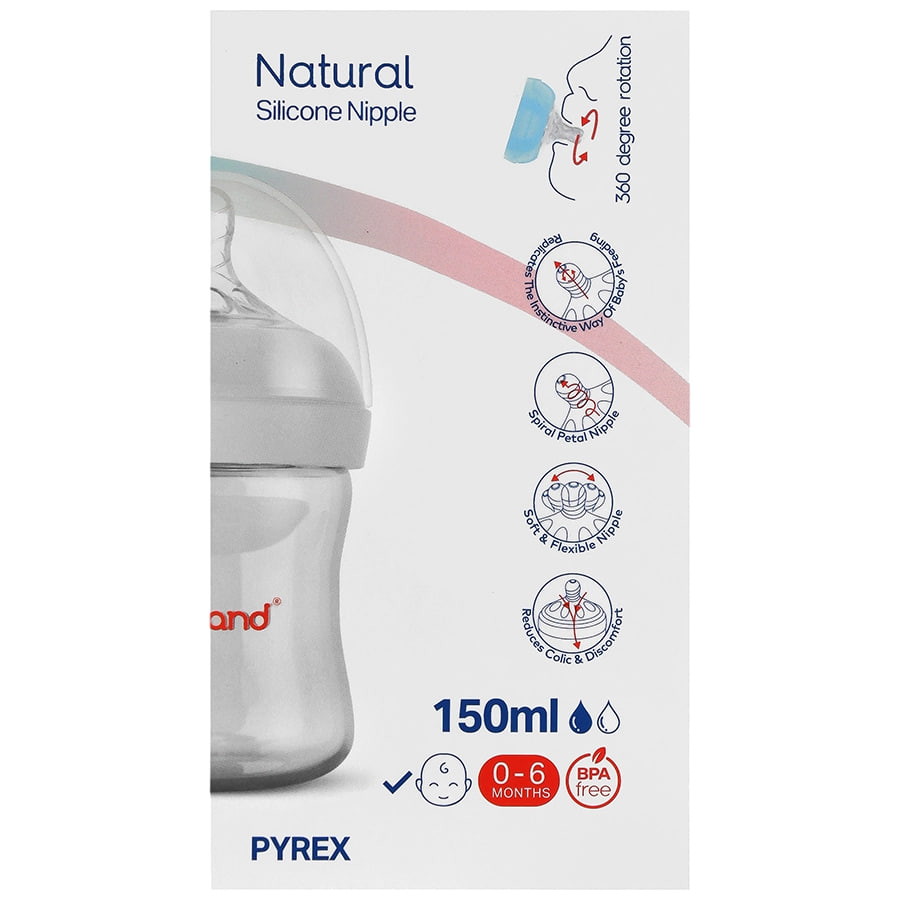 شیشه شیر پیرکس pp نچرال 125 میل بی بی لند کد babyland 205 – تغذیه طبیعی و ضد نفخ 👶🍼