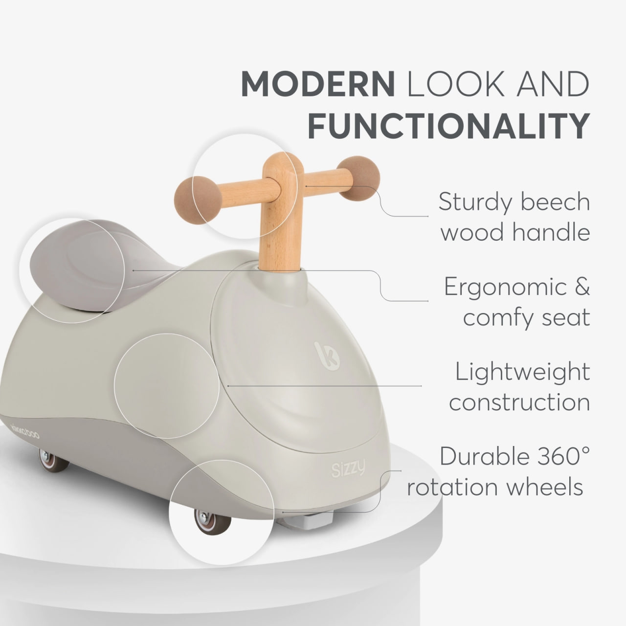 چهار چرخ جدید کیکابو بنام sizzy مناسب کودکان 1 تا 3 سال است و دارای محافظ است که از واژگونی وسیله جلوگیری میکند. این محصول دارای 4 چرخ با قابلیت چرخش 360 درجه است و برای استفاده روی انواع کفپوش مناسب میباشد. صندلی Sizzy ارگونومیک و از جنس پلی اورتان بوده، دسته ی این محصول از چوب راش ساخته شده و وزن سبک این محصول، حمل را برای شما راحت میکند.
