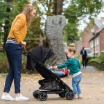 • Nuna Pepp Next – Caviar مانور عالی و سواری نرم‌تری نسبت به نسل‌های قبلی Pepp ارائه می‌دهد! Pepp Next یک صندلی رومیزی درجه یک است که سبک لوکس را با طراحی فوق العاده فشرده به هم متصل می کند. دارای یک قاب مشکی براق مدرن با دسته های چرمی قابل تنظیم است که ظاهری لوکس به این کالسکه جمع و جور می دهد. چرخ‌های بزرگ نقره‌ای با سیستم تعلیق فنری بهبودیافته، سواری نرم و راحت را برای کودک شما فراهم می‌کند. روکش صندلی تمام فصل با پارچه های با کیفیت با قسمت پشتی صندلی مشبک پوشانده شده است که مانع از شیرین شدن پشتی کودک شما در روزهای گرم تابستان می شود. واحد صندلی دارای یک مهار سه یا پنج نقطه ای ضد حلقه، سایبان UPF 50+ قابل جابجایی با سایه چشم برگردان و پایین کشیدن بی صدا Dream drape™ است.