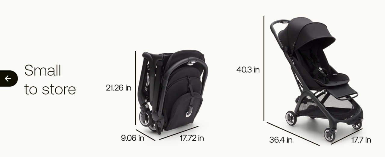 • ابعاد کالسکه در حالت بسته : ۴۵ × ۲۳ × ۵۴ سانتی‌متر